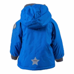Sininen takki on vuorattu pehmeällä fleecellä ja THERMOLITE-kuidulla. Käytännöllinen ja irrotettava huppu painonapeilla. Pehmeästi ribattu huppu ja hihansuut sekä epäsymmetrinen vetoketju etupuolella. Takki on hengittävää materiaalia ja sen vedenpitävyys on 9000 mm (WP9000).
