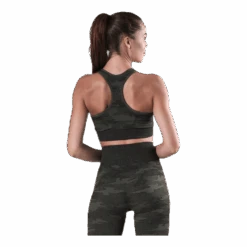 BLACC Fitness collection. Medium support urheiluliivit saumattomalla muotoilulla ja siistillä camouflage-kuviolla. Selästä ristikkäin menevät olkaimet tarjoavat täyden liikkuvuuden. Irrotettavat pehmusteet ja leveä elastinen nauha rintojen alla, joka tarjoaa tukea. Materiaali: 68% Polymidiä, 25% Polyesteriä, 7% Spandex. Hoito-ohje: Muista huoltaa vaatteitasi niiden keston pidentämiseksi. Pese vain tarvittaessa ja seuraa aina pesulapussa olevia ohjeita.