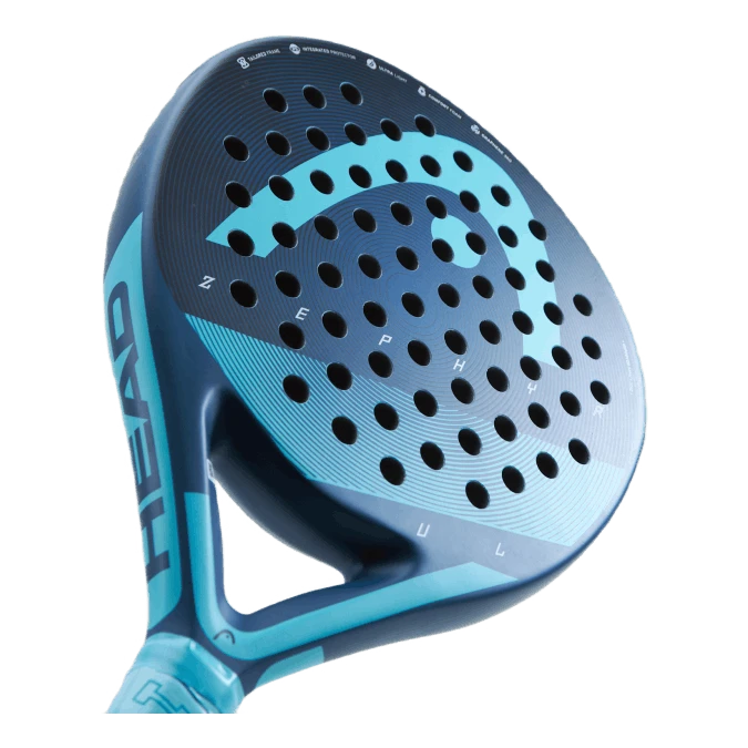 Zephyr Ultralight Padel Racquet, joka on HEADin koko padelmalliston kevyin maila. Tämä maila on helppo pelata, ja sen tuntu on pehmeä ja mukava. Innovatiivinen Graphene 360+ -tekniikka parantaa joustavuutta ja tuntumaa.