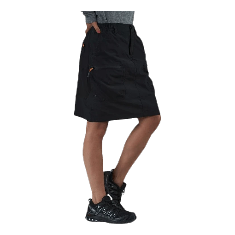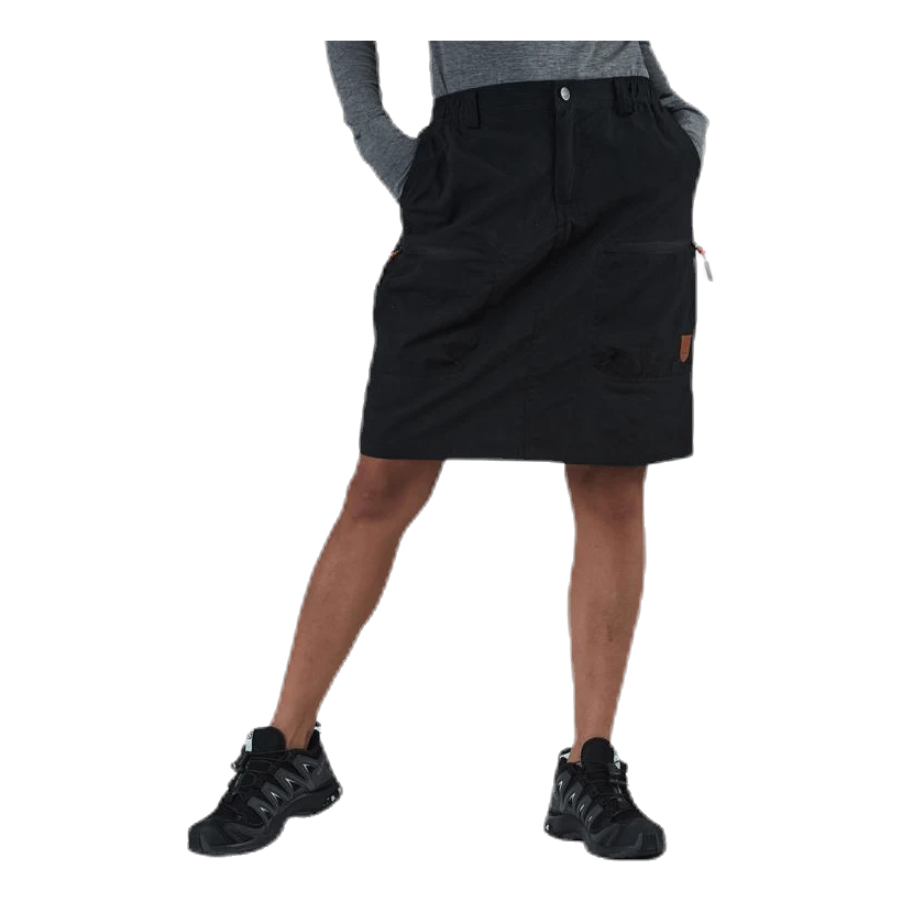 Tekninen vaellushame, joka on valmistettu siististä comfortex -materiaalista. Maksimaalisen liikkuvuuden varmistamiseksi ja hiertymien estämiseksi hameessa on pehmeästä polyesteristä valmistettu sisätasku, joka loppuu noin 10 cm ennen hameen alareunaa. Hame on asteen pidempi kuin Hollie -malli ja laskeutuu polviin asti. Hame on varustettu takaosan stretch-paneelein ja vyötärön resori helpottaa liikkumistasi. Kaksi vetoketjullista reisitaskua, joihin saat arvotavarasi säilytykseen ja lisäksi kaksi vetoketjullista taskua hameen takapuolella.