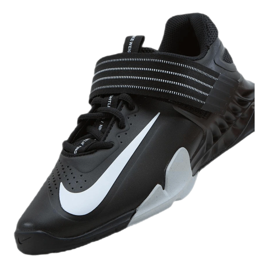 Nike Savaleos kiinnittää jalkasi tasaiselle, leveälle alustalle pitääkseen olosi vakaana ja turvallisena, kun vastustat vakavaa painoa. Jäykässä välipohjassa on nosto kantapäässä huippuvoiman siirtämiseksi maasta, mikä auttaa tukemaan räjähtävimpiä sarjojasi.