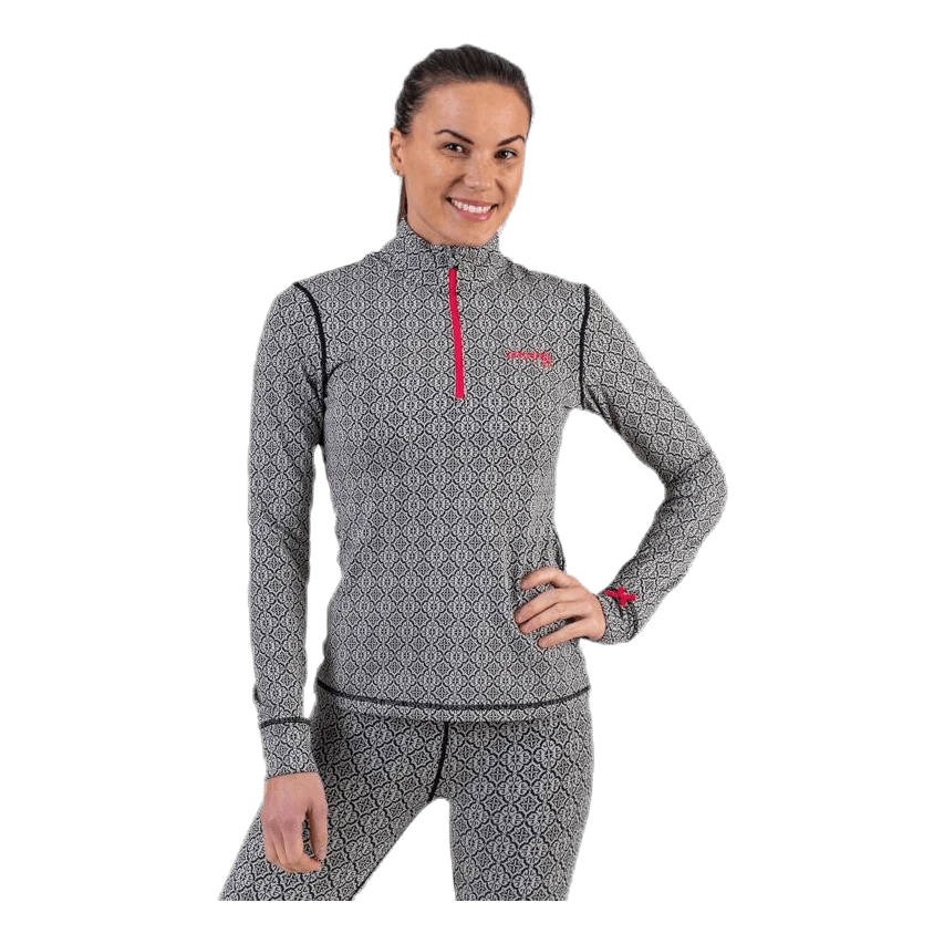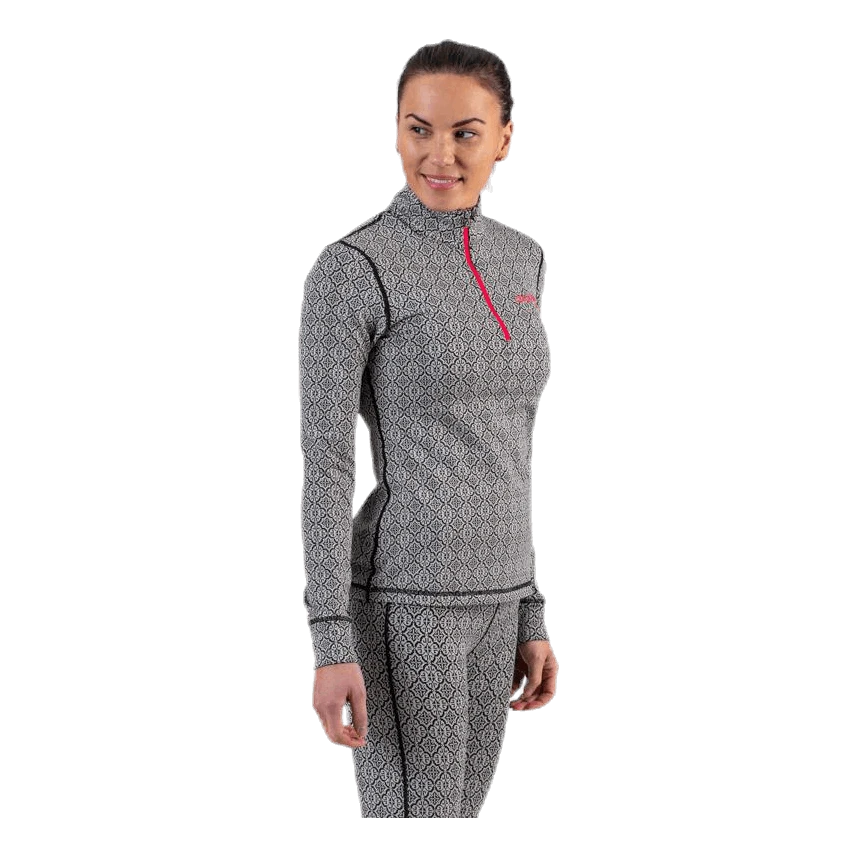 Kuvioitu aluspaita harjatulla sisäpuolella ja sileällä ulkopuolella, erinomaisen mukava ja lämmin, sopii myös hyvin välikerrosasuksi *Hyvin hengittävä *Nopeasti kuivuva *Vartalonmyötäinen *Flatlock saumat. 92% polyesteri, 8% elastaani.