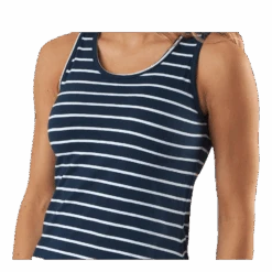 Todella kaunis trikoomekko, jossa on laivastonsinistä vaikutteita. Mallissa on vain olkapäät ja vartaloa myötäilevä istuvuus, hyvä valinta mukaviin kesäpäiviin.